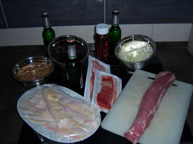 Cal. 88mm corazón Piercing Bacon Roll - relleno con cebollas y ciruelas, envuelto en una trenza de tocino (1 / 10 paso)