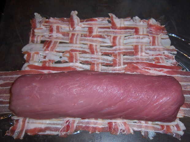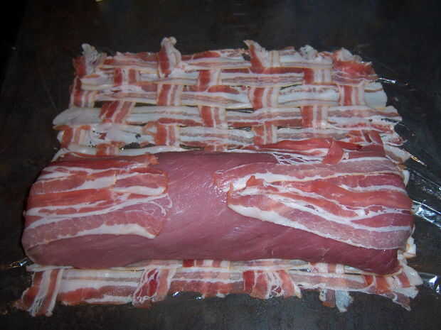 Cal. 88mm corazón Piercing Bacon Roll - relleno con cebollas y ciruelas, envuelto en una trenza de tocino (7 / 10 paso)