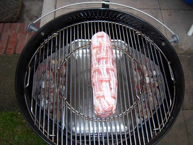 Cal. 88mm corazón Piercing Bacon Roll - relleno con cebollas y ciruelas, envuelto en una trenza de tocino (8 / 10 paso)