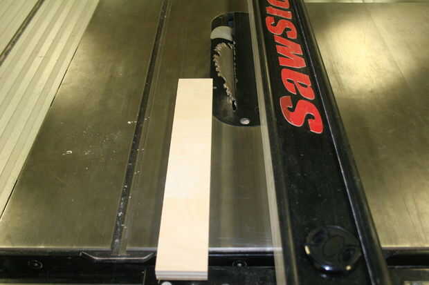 Cortar al tamaño que se necesita. Cuando corte la cuña en la tronzadora, asegúrese de mantener la mayor superficie en el lecho de la sierra. La Cala montado de pared debe ser sólo un poco más larga.