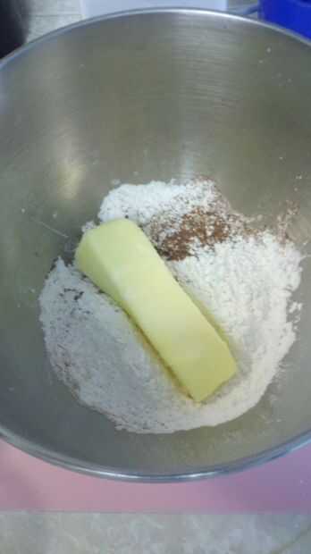 1. PRECALIENTA el horno a 350 grados. Tamice la harina, canela, bicarbonato, polvo de hornear y 1/4 cucharadita de sal en un bol. Batir 1 palillo de la mantequilla y los azúcares hasta pálido y esponjoso. Batir huevo y vainilla.  (En algún momento saltear este paso y añadir estos ingredientes a la vez... el resultado es absolutamente el mismo)
