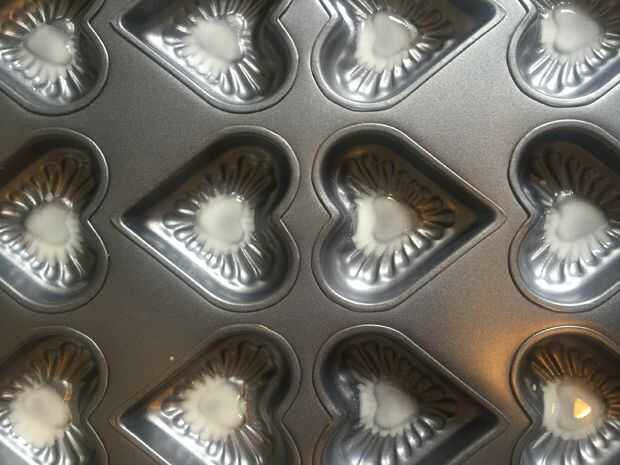 Tomar un molde de Magdalena o un recipiente rectangular regular. Estoy usando corazón en forma de pasteles, similar a un pan de Magdalena. Engrasar ligeramente la sartén con aceite. Vierta la mezcla en la sartén. Hornear durante unos 40-45 minutos.