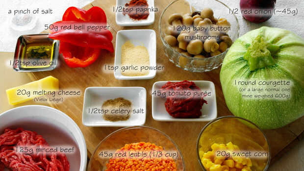 1. vas a empezar por preparar el calabacín, convirtiéndose en un bol. Así que adelante y fingir que es Halloween y tallar tu calabaza. Cortar un poco la tapa (o sombrero) desde la parte superior, teniendo cuidado de no resbalar y cortarse. Use el reverso de una cuchara a la fuerza la tapa hacia fuera para evitar cualquier accidente lamentable suceda. Luego ahueque hacia fuera con una cucharada del helado. También puede utilizar una cuchara normal, pero la cucharada del helado es más fácil - y en mi opinión más divertido. Asegúrese de que no se muy próxima a la piel, así que prueba y dejar por lo menos 0.5 a cm pared y 1cm en la parte inferior. Una vez que hayas completado esa tarea, despedazar las entrañas de calabacín en trozos más pequeños.