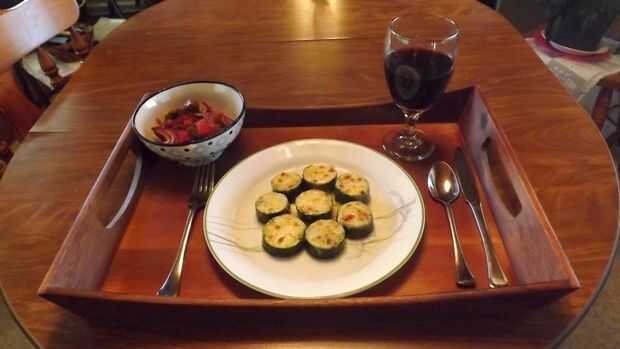 Aunque puede servir el calabacín como un aperitivo o un plato, un poco ensalada (en este caso, algunos restos aguacate, tomate y cebolla roja con aceite de oliva y vinagre balsámico), un poco cocido el calabacín, y Chianti un poco hacer una comida excelente!