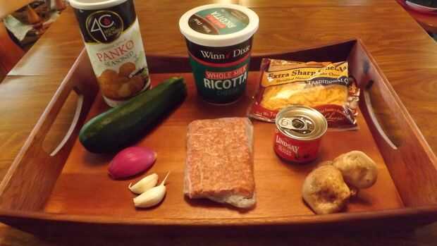 CALABACINES al horno rellenos de queso RICOTTA y la salchicha caliente (1 / 5 paso)
