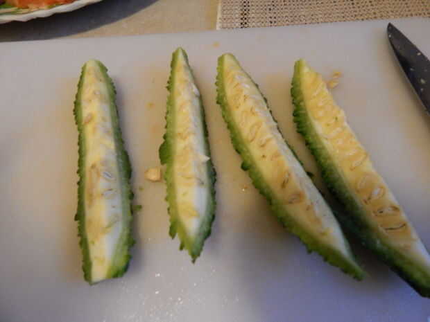 1. Comience por cortar el bitter gourd