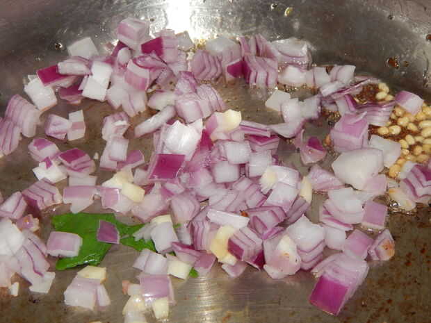 1. En la misma cacerola caliente el aceite, agregar las semillas de mostaza y urad dal.