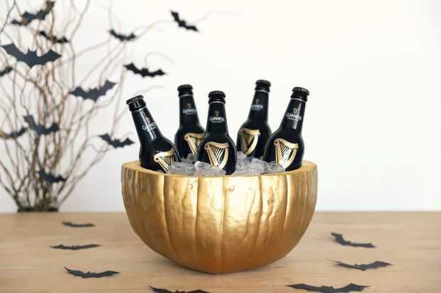 Si quieres una forma fácil y calabaza mirando a servir bebidas embotelladas esta temporada de fiesta de Halloween, no busques más! Este enfriador de bebida calabaza es super rápido de hacer y fácil de personalizar para cada estilo de decoración.