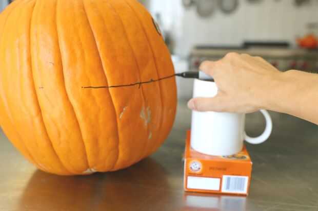 Desea dibujar una línea alrededor de tu calabaza apenas pasada mitad de camino.