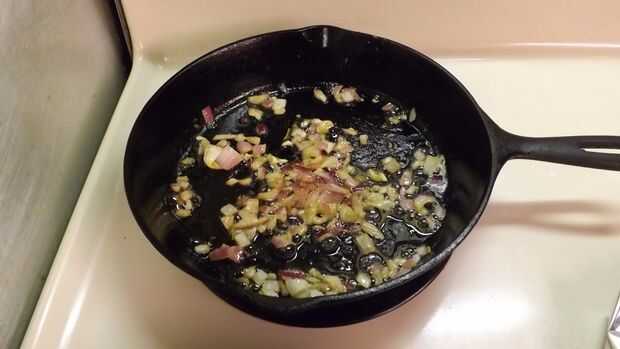 - Agregar 1 cda de aceite a una sartén de hierro fundido cacerola o pesados antiadherente y calor sobre calor medio alto.