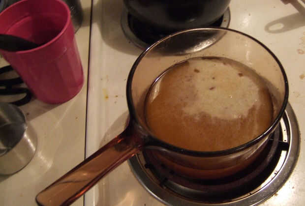 Mientras esa mezcla está hirviendo, batir el huevo en una batidora eléctrica en medio hasta que estén espumosos. Añadir el cremor tártaro y batir en alto hasta que se formen picos suaves.