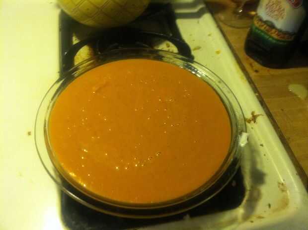 Vierta la mezcla de calabaza en un plato engrasado.
