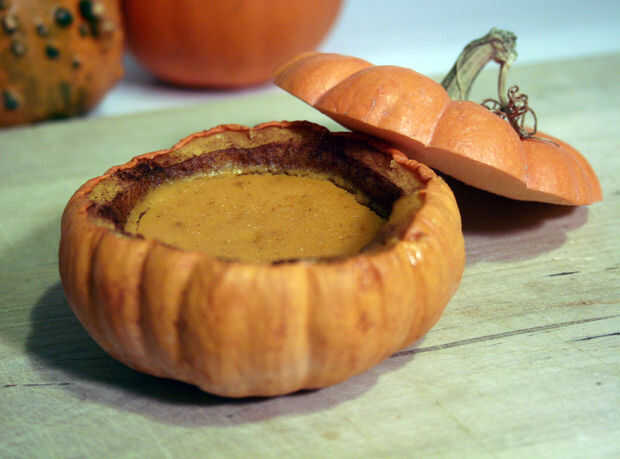 Servir tibio o a temperatura ambiente - ambos son buenos - con las tapas de calabaza aparecen en el lado de mayor ternura.