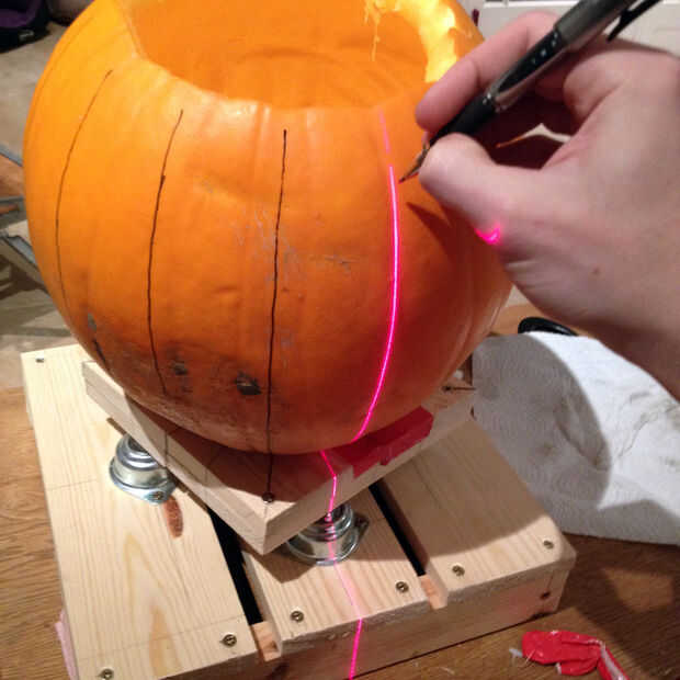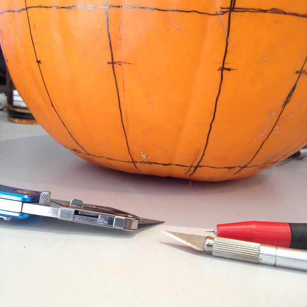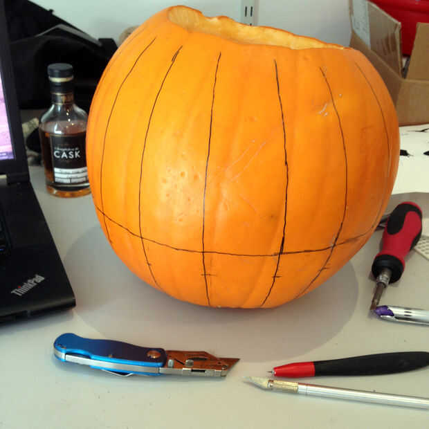 Así como las líneas de longitud de dibujo, debe marcar tres anillos de la latitud. Uno de ellos será un punto de referencia para sus cuadros de animación, mientras que los otros dos va a marcar la parte superior e inferior de las rejillas de luz. La parte superior de las ranuras debe ser a medio camino entre el Ecuador de la calabaza y su polo sur.
