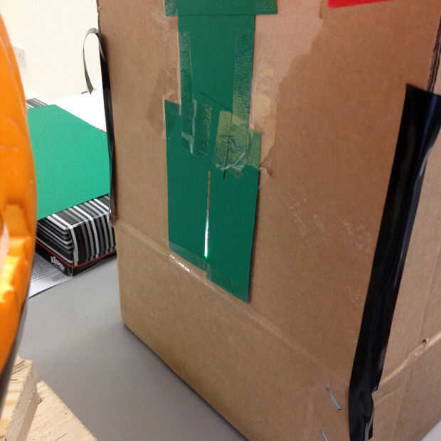 Hacer una lámpara de hendidura cruda corte una ranura vertical en el lado de una caja de cartón y colocando una linterna adentro, hacia fuera de la ranura. Utilice pedazos de tarjeta como persianas para activar la ranura en una ranura, que puede ajustar más adelante. Ahora debe haber un alto, delgado haz de luz brillante fuera de la caja.