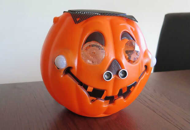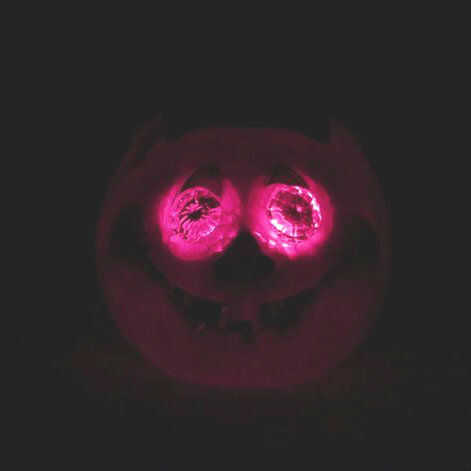Calabaza "ojos" son ensamblados por fijar módulo del diodo de láser de 5mW 650nm rojo a la parte posterior de Asfour Feng Shui bola de cristal prisma con pegamento caliente. El prisma de múltiples caras crea múltiples reflejos del haz láser, y produce bastante amenazante mirada.