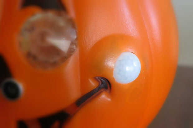 Dos sensores de movimiento de infrarrojos se colocan en las esquinas de la boca de calabaza.
