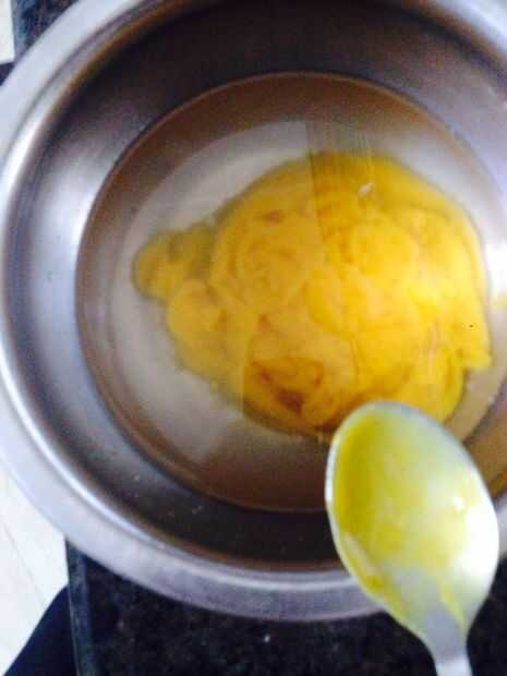 Añadir la primera mezcla de pulpa de Mango y mezclar con una cuchara.