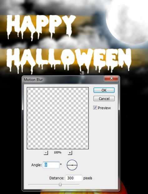 Ahora vamos a filtro -> Desenfoque -> Desenfoque de movimiento y el ángulo a 0 y la distancia a 300.