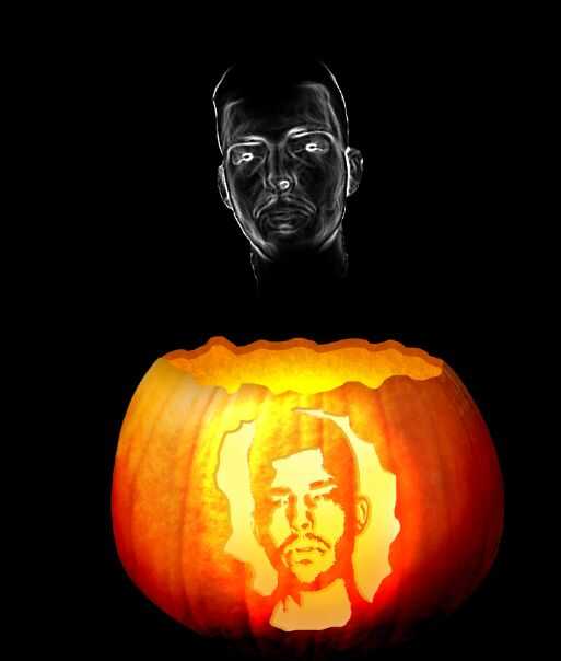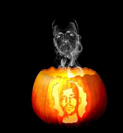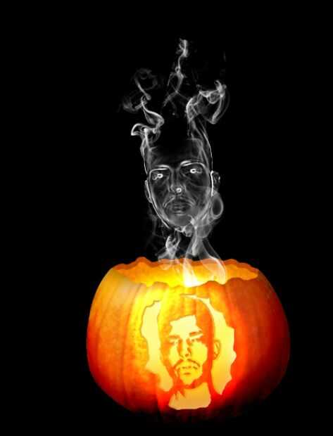 ** He utilizado dos fotos de humo que "salieron" de la calabaza porque uno no es suficiente. Si tiene problemas de heving con mezcla el humo en la parte inferior de la cara, deberías probar con otra foto de humo.