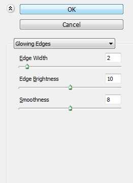 su objetivo con la configuración de los ajustes es hacer el nuestro rostro para seguir mirando como una cara, no hacer demasiado brillante y a mantener una sensación de "smokey" en las áreas negras de la cara. para mí de borde ancho: 2, brillo de borde: 10 y suavidad: 8 funcionó muy bien.