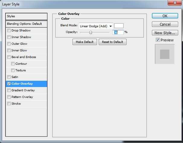 ir a las opciones de fusión "Luna 2" (haga clic derecho sobre la capa en la paleta de capas) y siga las "color overlay" como se ve en mi foto (color: blanco puro, modo de mezcla: Sobreexposición lineal (Añadir), opacidad: 35% - 40%).