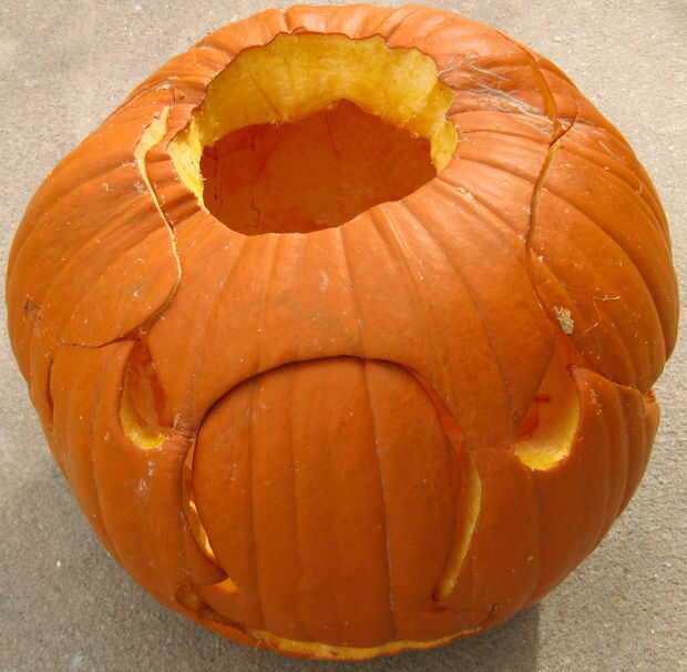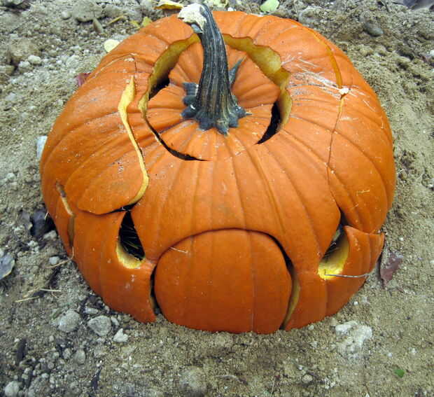 Tomar el compost-o-linterna a un lugar fuera de donde puede compost durante unas semanas. Yo medio enterrada mina en un jardín. Recomiendo por lo menos parcialmente enterrarlo para que no caiga aparte demasiado fácilmente. Si tienes problemas con las ardillas u otros animales que a él, completamente puede enterrarlo.