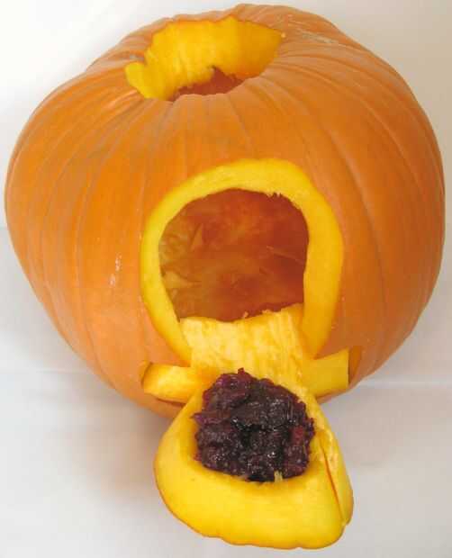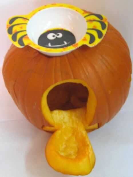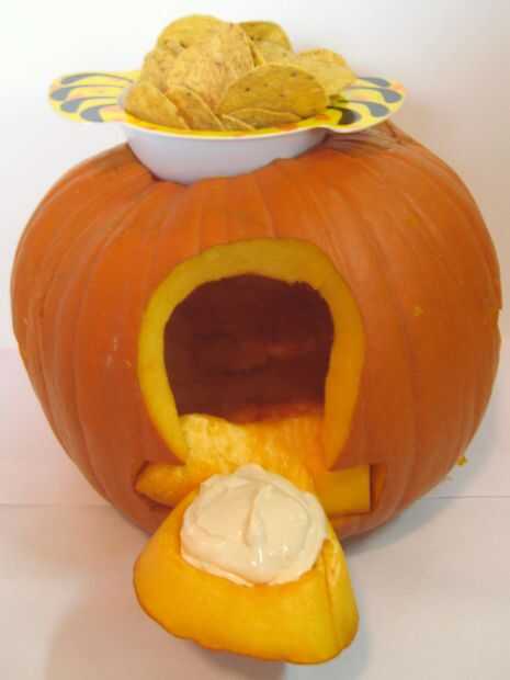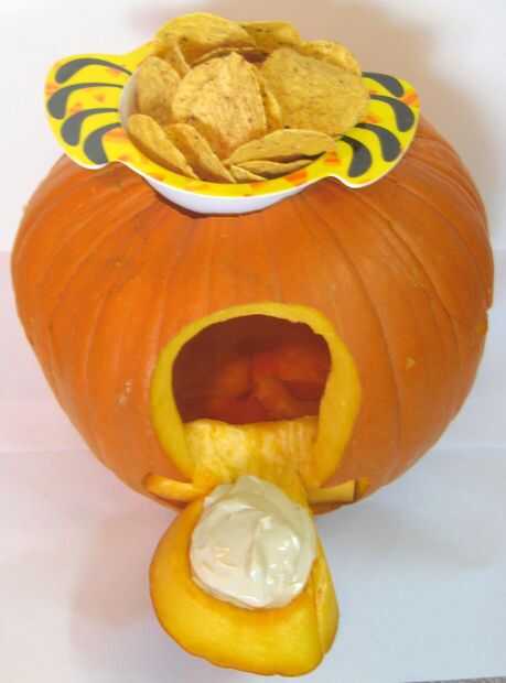 Punta: Si estás haciendo esto para una fiesta, te recomiendo tallar la calabaza y hacer este plato en el mismo día de la fiesta para que el plato no consigue demasiado viejo para usar! Si no haces esto, entonces trate de guarnición en el plato con envoltura de plástico y coloque los alimentos sobre la envoltura.