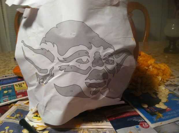 Esta parte fue un poco de una molestia porque la plantilla debe estar abajo de plano en una calabaza, tardó unos minutos en llegar abajo plano, pero lo tengo. Grabado en la plantilla por aferrarse a la calabaza.