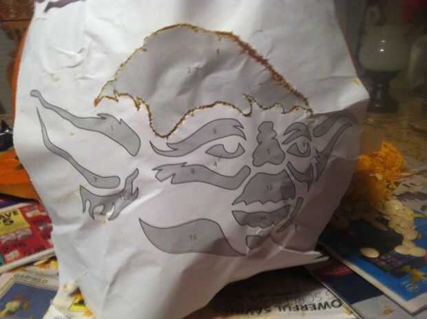 Paso 5: Meter los agujeros en la calabaza alrededor de la plantilla.