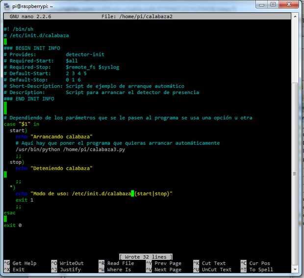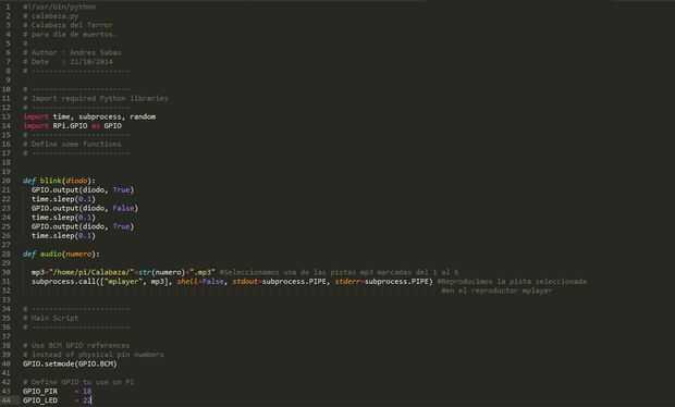 Es hora de programar crear nuestro script en python para tome vida nuestra calabaza