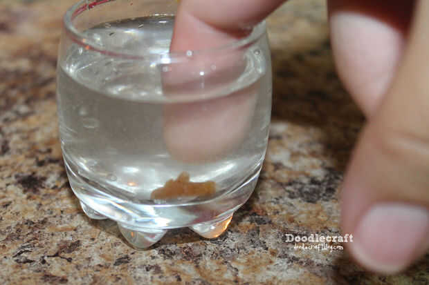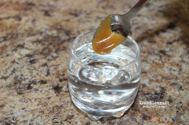 Toma un vaso pequeño de agua fría y dejar caer una cuchara pequeña de la mezcla dentro.