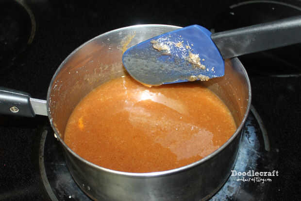 Revuelva constantemente 10-12 minutos hasta que alcanza 235 * F o bola suave.