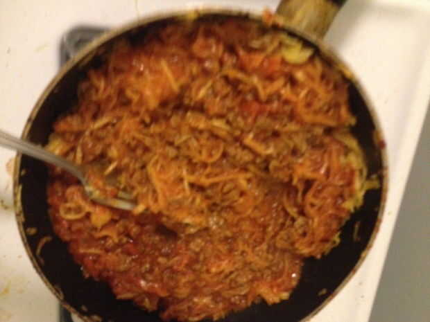 -Agregar salsa y calor bien, revolviendo de vez en cuando