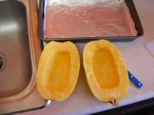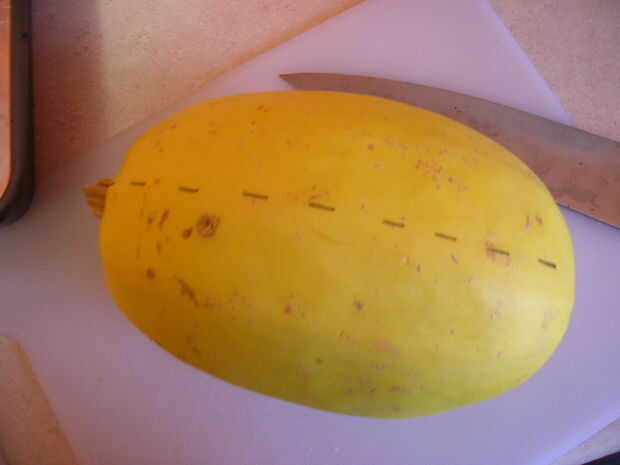 La calabaza tiene una piel resistente y la parte carnosa es densa, por lo que se necesita cierto esfuerzo para dividir el de arriba a abajo.