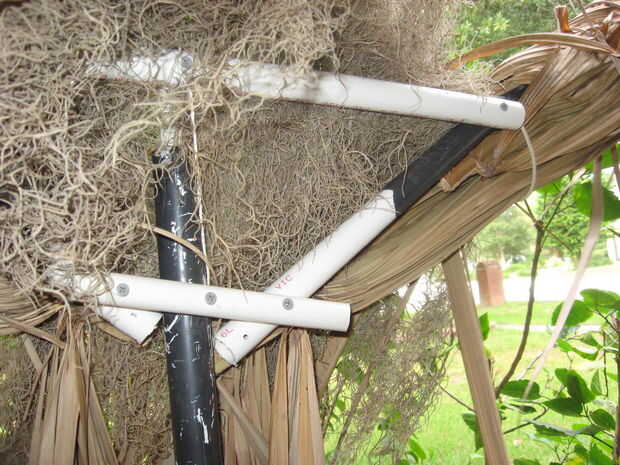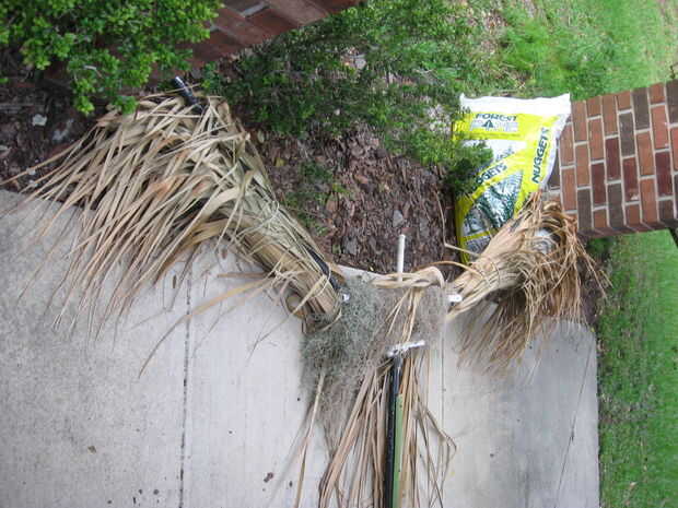 En la sección representativa que sujeta los dos brazos, colgué un montón y un montón de musgo español. Tengo un montón de que crecen en los árboles de mi patio trasero, por lo que lo no fue ningún problema para mí. Si usted tiene que comprar, considere el uso de cosa en su lugar.