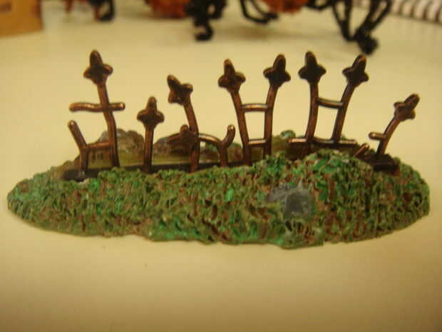 agregar tu araña, piedras de la tumba, musgo, árbol y cerca te recomiendo poner en las piedras de la tumba, del árbol y así que usted puede cubrir los cables de la cerca en primera