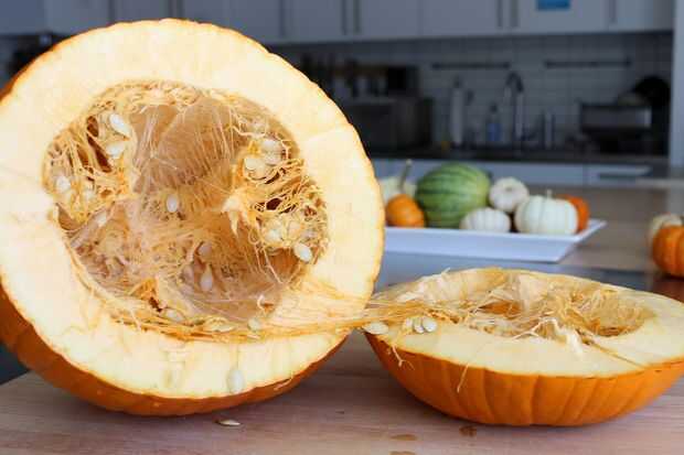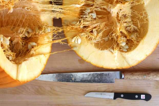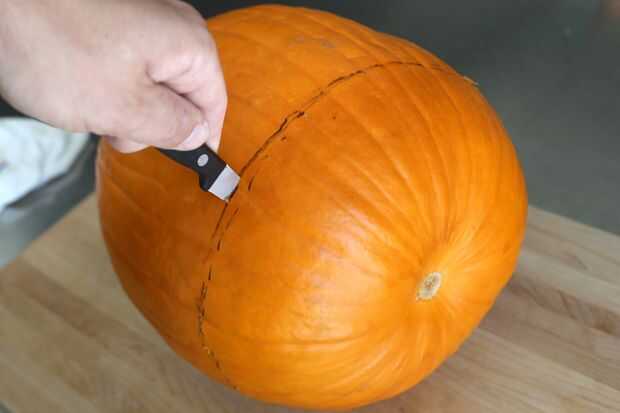 Con un cuchillo con cuidado corta la parte inferior de la calabaza.