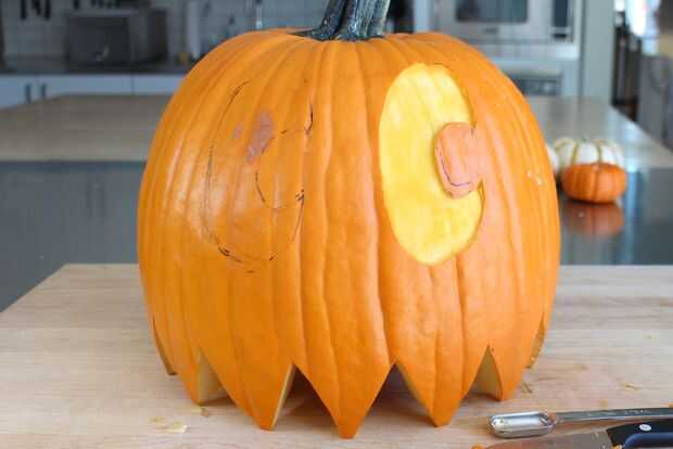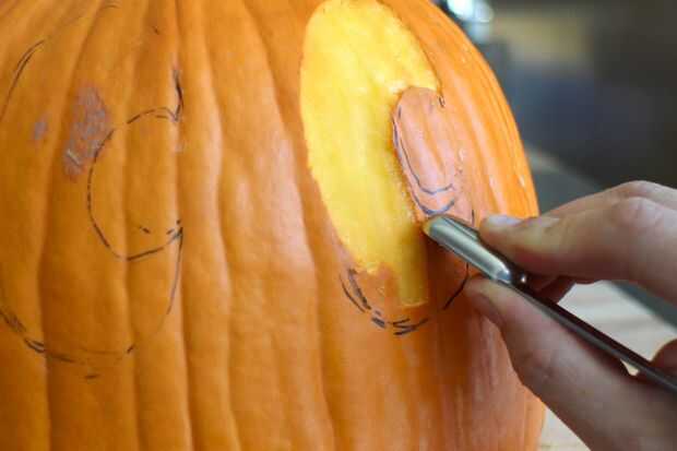 Raspe la forma del ojo, teniendo cuidado para permanecer dentro del contorno tallado.