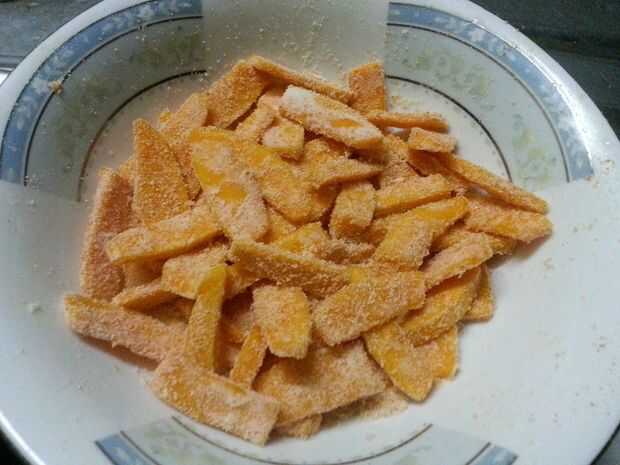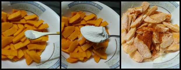 Poner la calabaza en rodajas en una olla o recipiente para aderezo,