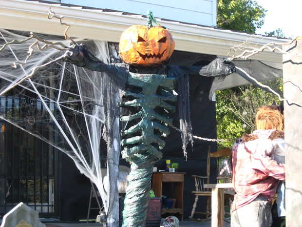 No dejes que la tonta cara te engañe, este hombre feliz es una de las calabazas más inteligentes en el parche. La calabaza de maché de papel gigante está iluminada interior con el nuevo flujo inteligente bombilla de luz LED. Flujo es una equivalente,