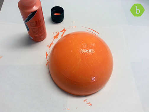 Mientras las hojas y el tallo seco, pinte la bola de espuma de poliestireno naranja. Colocar una primera capa y deje secar. Terminarás haciendo al menos dos capas para obtener un buen color naranja.