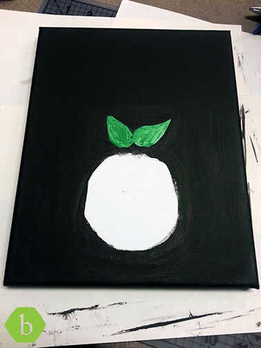 Mientras se está secando la calabaza, pintar el fondo de tu lienzo! Simplemente opté por el negro sólido, pero realmente no hay límite a lo que puede hacer. Pinté un poco dentro de las líneas de mi círculo sólo para estar seguro habría color sólido hay si no coloco la calabaza bien al pegar.