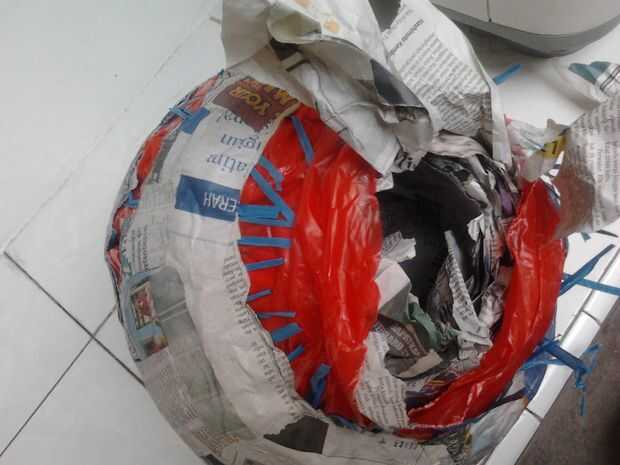 1. Corte la correa de plástico y bolsa de plástico envolviendo la forma básica de calabazas