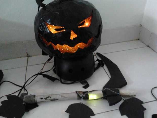 3 pares de luces LED que han sido enhebrados a bagiang cabeza y conectan con un cable (como tallo rastrero) a la arma. (para la barra de alambre como si viñas se envuelven alrededor de la empuñadura del arma.