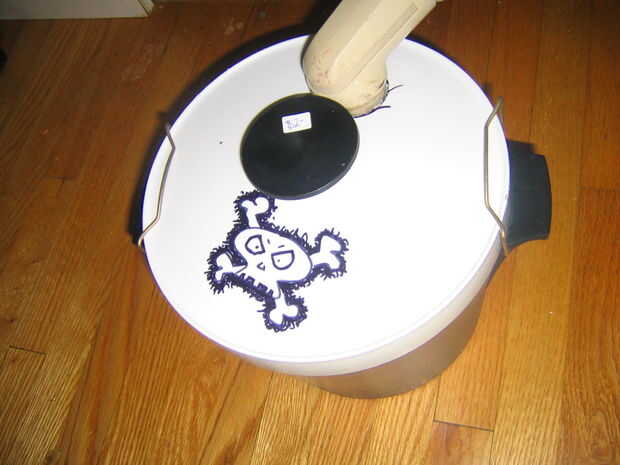 Fue fácil de cortar un agujero en la tapa para fijar la manguera de vacío con un cuchillo del exacto. (esto hubiera sido más difícil con una olla a presión)