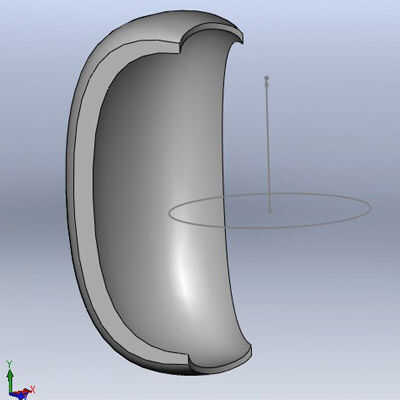 La calabaza tendrá un cilindro a través del núcleo que contiene la electrónica. El diámetro dependerá de la batería que está usando, en mi caso una pila CR2450 con un 24,50 mm de diámetro. Añadir 1mm a cada lado por el espesor de pared es de 26,50 mm para la base de diámetro. Puede crear un círculo con este tamaño en el plano superior con el centro en el origen. Entonces, hacer un corte extruido para cortar el cilindro fuera del cuerpo sólido que acaba de crear para la sección de cáscara de la corteza.