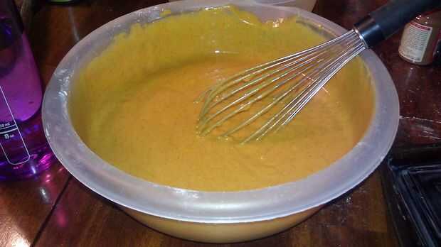 Esparcir uniformemente en una sartén engrasada de 15 x 10 pulgadas.