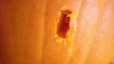 Es volver a la talla! Corte una ranura pequeña en la parte trasera de la calabaza para el interruptor. Asegúrese de que no es demasiado grande o demasiado pequeño.