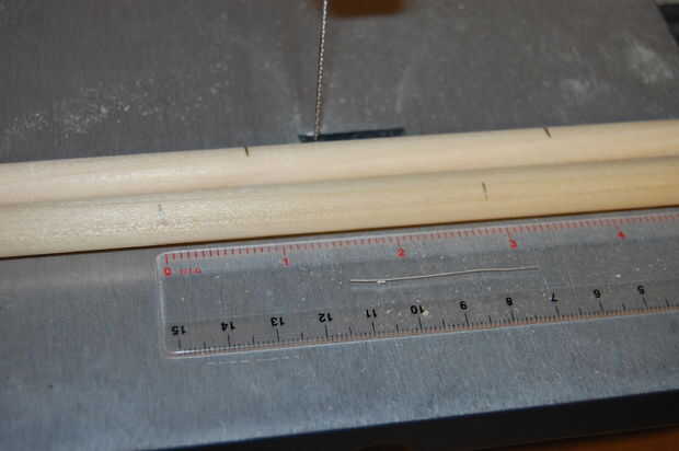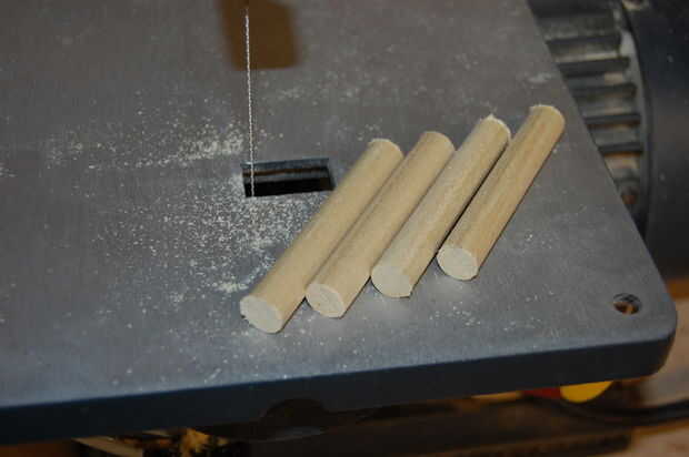 Bien, no lo hace mucho más fácil que esto. Cortar tantas piezas como quieras desde el pasador de madera, a la longitud deseada. Hice mis mangos 1.75" de largo.